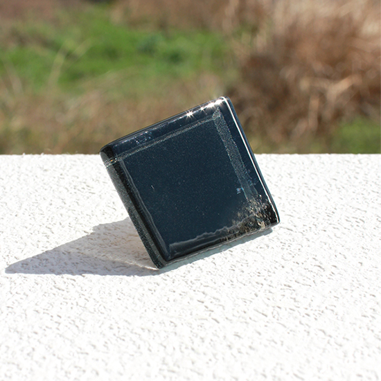 ガラス作家ISAKOが、独自の手法で透明なガラスから彩色・焼成を繰り返し、ひとつひとつ手作業で作り上げた、1点もののコムデシオガラスの帯留めです。