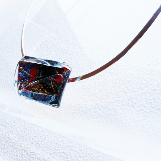 また、ペンダントのように重さが1点に集中する事無く、チョーカーがガラスの重さを分散する為、軽い着け心地。