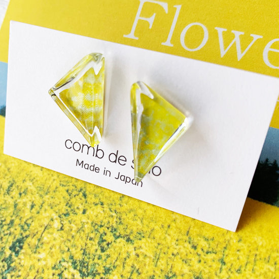 幸せを運ぶ伊勢志摩の花畑をイメージしたイエローのガラスピアス。
