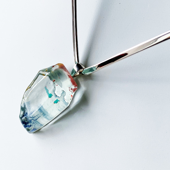ペンダント用ガラストップは、色々なチョーカーやチェーンに通すことができように、コムデシオオリジナルのバチカン金具(シルバー925)を使用しています。