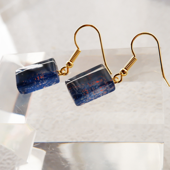 星が瞬く伊勢志摩の夜空をイメージしたミッドナイトブルーのガラスピアス。