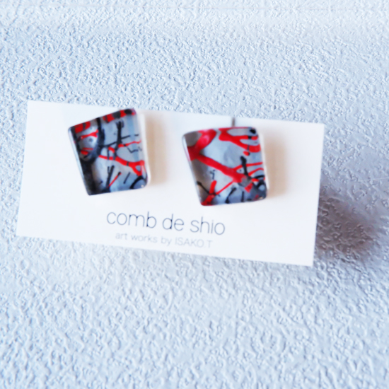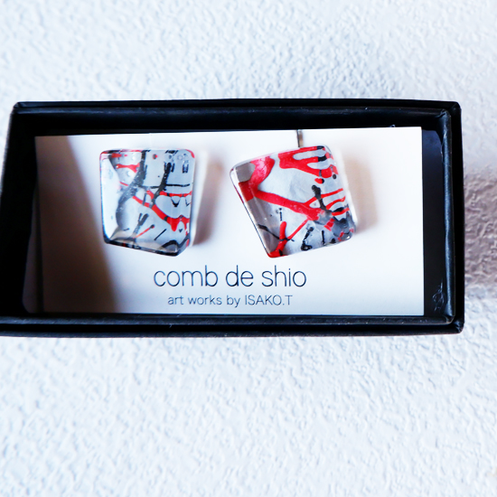 ガラス作家Isakoが、独自の手法で、透明なガラスから彩色・焼成を繰り返し、ひとつひとつ手作業で作り上げた、美しい1点もののガラスイヤリングです。