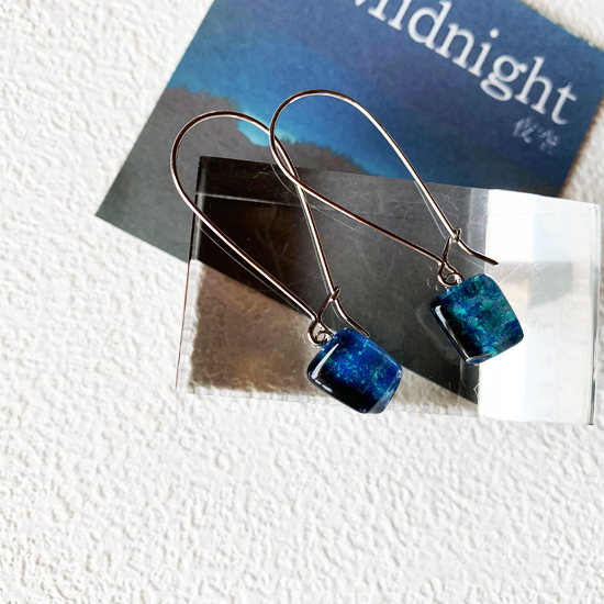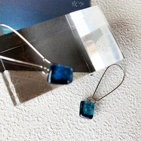 星が瞬く伊勢志摩の夜空をイメージしたミッドナイトブルーのガラスピアス。