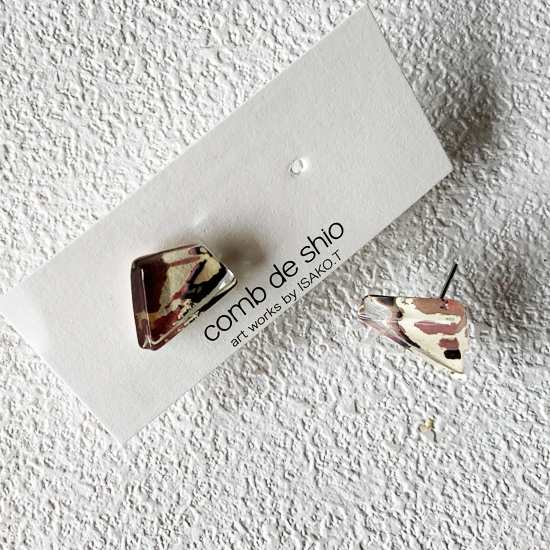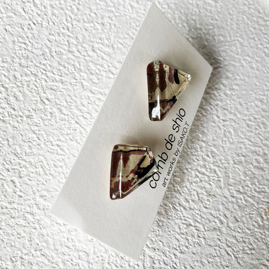ガラス作家Isakoが、独自の手法で、透明なガラスから彩色・焼成を繰り返し、ひとつひとつ手作業で作り上げた、美しい1点もののガラスピアスです。