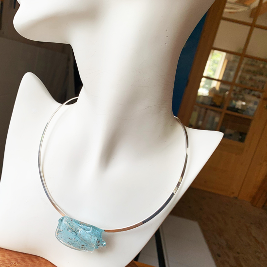 また、ペンダントのように重さが1点に集中する事無く、チョーカーがガラスの重さを分散する為、軽い着け心地。