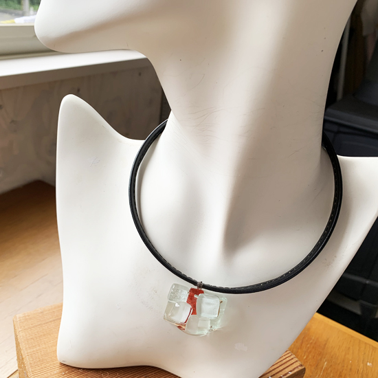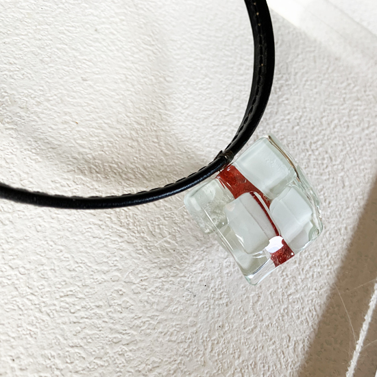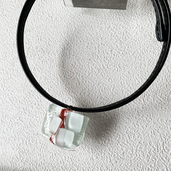 コムデシオでは、身に着けやすい様にガラス自体の重さも軽減できるように工夫しています。なかでも、この革チョーカーは、チョーカー部分がガラスの重さをさらに分散!ご愛用者の皆様「軽い!何も感じない位!着けていないみたい!」と、大好評です。気軽に、楽に、おしゃれしたい!という方は、是非、トライしてみて下さい。