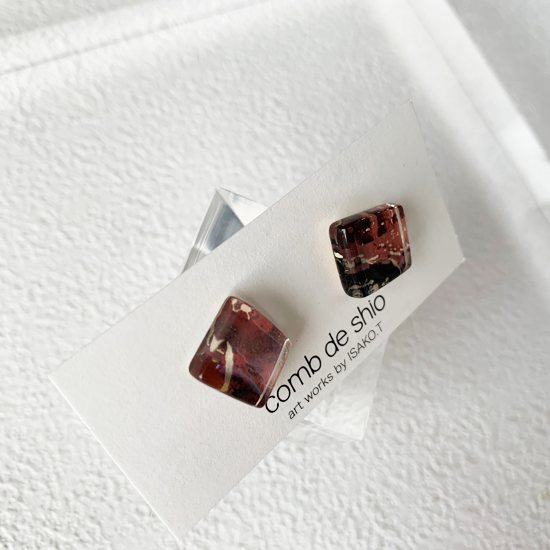 ガラス作家Isakoが、独自の手法で、透明なガラスから彩色・焼成を繰り返し、ひとつひとつ手作業で作り上げた、美しい1点もののガラスピアスです。