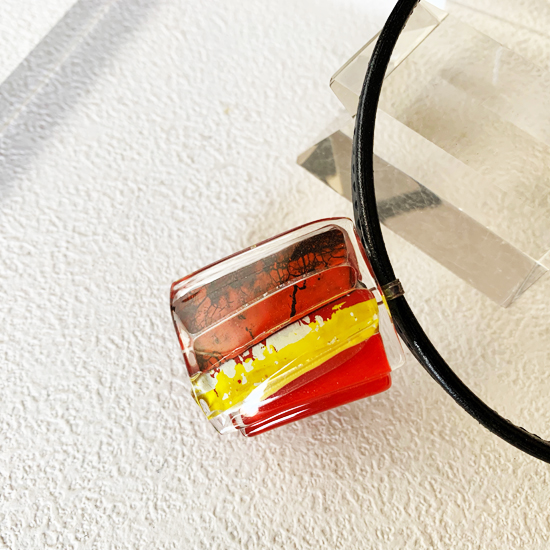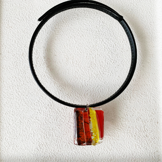 コムデシオでは、身に着けやすい様にガラス自体の重さも軽減できるように工夫しています。なかでも、この革チョーカーは、チョーカー部分がガラスの重さをさらに分散!ご愛用者の皆様「軽い!何も感じない位!着けていないみたい!」と、大好評です。気軽に、楽に、おしゃれしたい!という方は、是非、トライしてみて下さい。