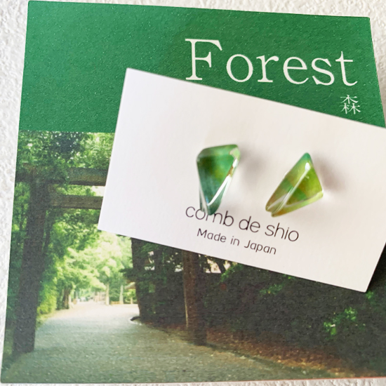 清々しい美しさを放つ伊勢志摩の森をイメージしたグリーンのピアス。