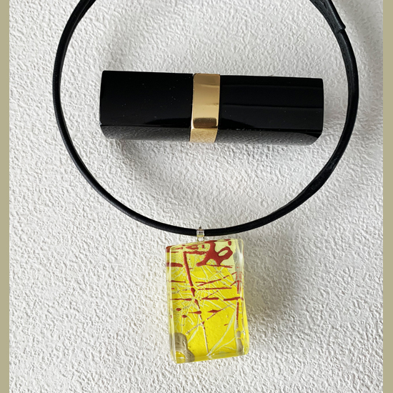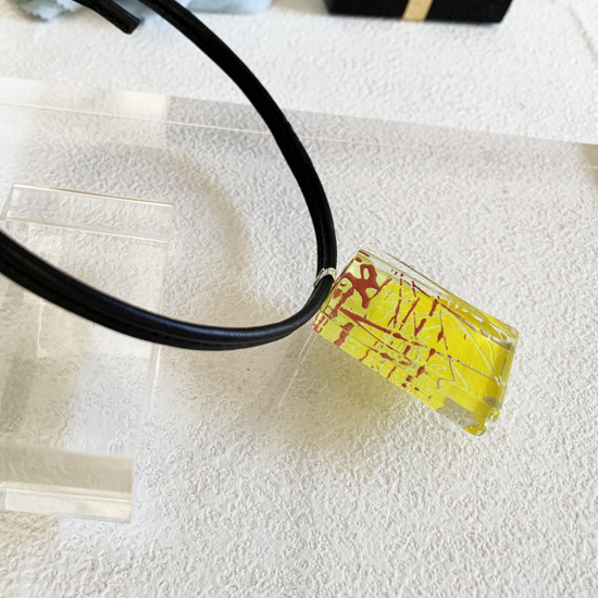 コムデシオでは、身に着けやすい様にガラス自体の重さも軽減できるように工夫しています。なかでも、この革チョーカーは、チョーカー部分がガラスの重さをさらに分散!ご愛用者の皆様「軽い!何も感じない位!着けていないみたい!」と、大好評です。気軽に、楽に、おしゃれしたい!という方は、是非、トライしてみて下さい。