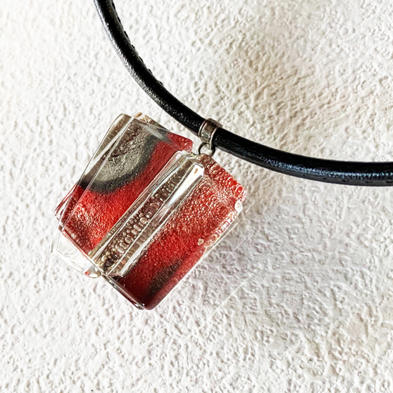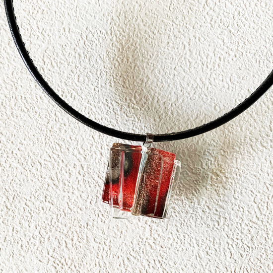 コムデシオでは、身に着けやすい様にガラス自体の重さも軽減できるように工夫しています。なかでも、この革チョーカーは、チョーカー部分がガラスの重さをさらに分散!ご愛用者の皆様「軽い!何も感じない位!着けていないみたい!」と、大好評です。気軽に、楽に、おしゃれしたい!という方は、是非、トライしてみて下さい。