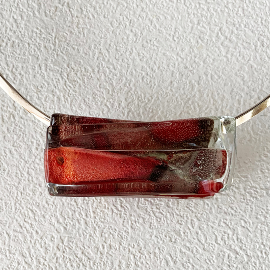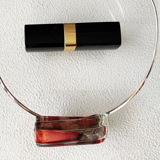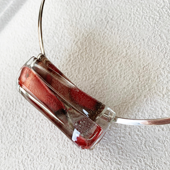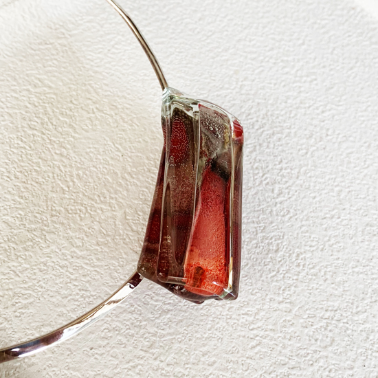 また、ペンダントのように重さが1点に集中する事無く、チョーカーがガラスの重さを分散する為、軽い着け心地。