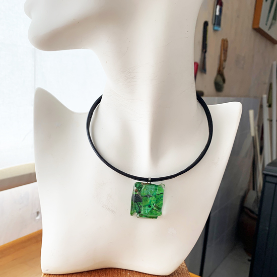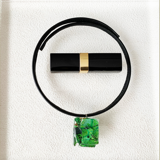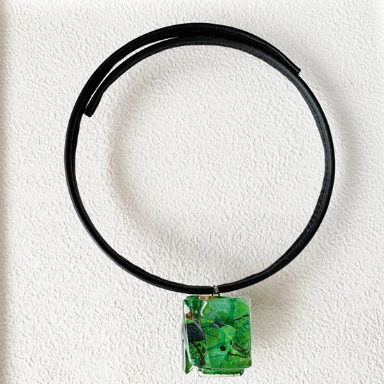 コムデシオでは、身に着けやすい様にガラス自体の重さも軽減できるように工夫しています。なかでも、この革チョーカーは、チョーカー部分がガラスの重さをさらに分散!ご愛用者の皆様「軽い!何も感じない位!着けていないみたい!」と、大好評です。気軽に、楽に、おしゃれしたい!という方は、是非、トライしてみて下さい。