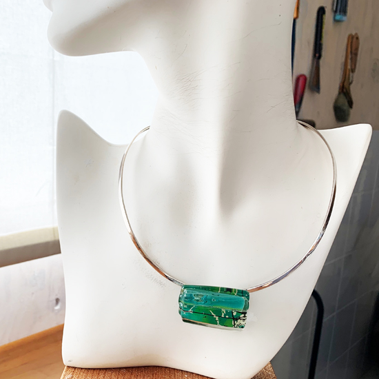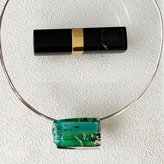 また、ペンダントのように重さが1点に集中する事無く、チョーカーがガラスの重さを分散する為、軽い着け心地。