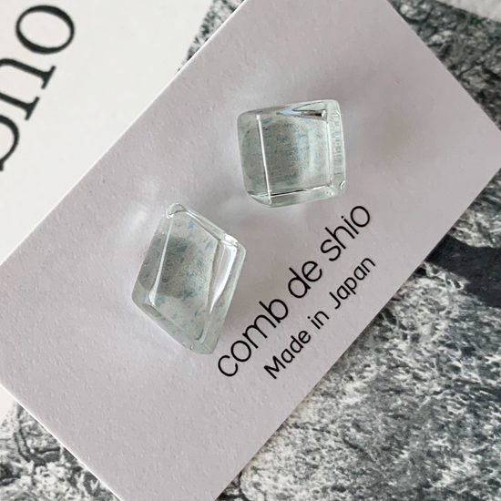 世界でひとつだけのコムデシオガラスのピアスを是非お楽しみください。