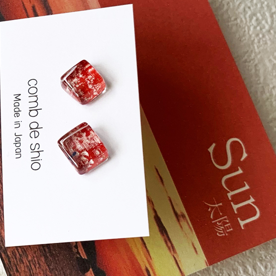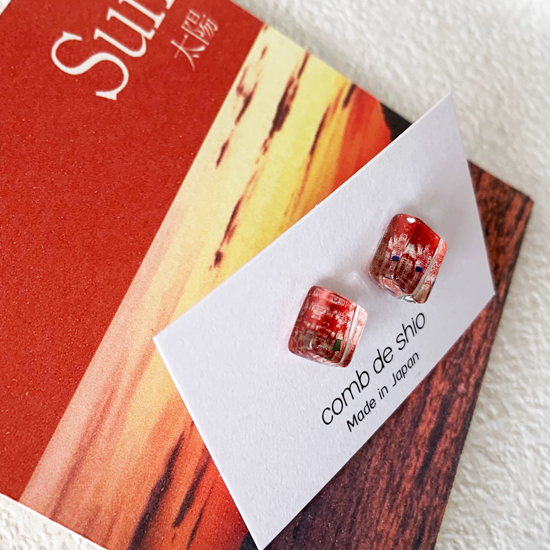 幻想的に空や海を染め上げる伊勢志摩の太陽をイメージしたレッドのガラスピアス。