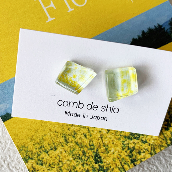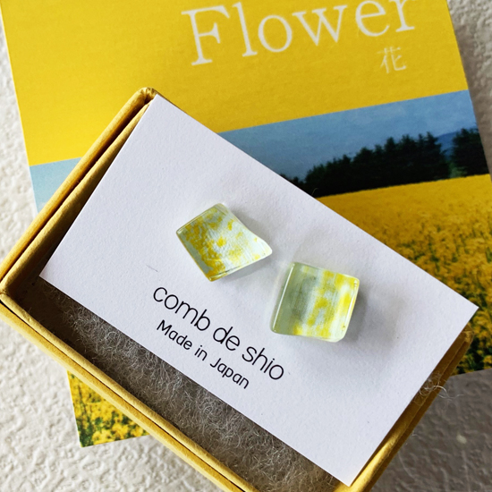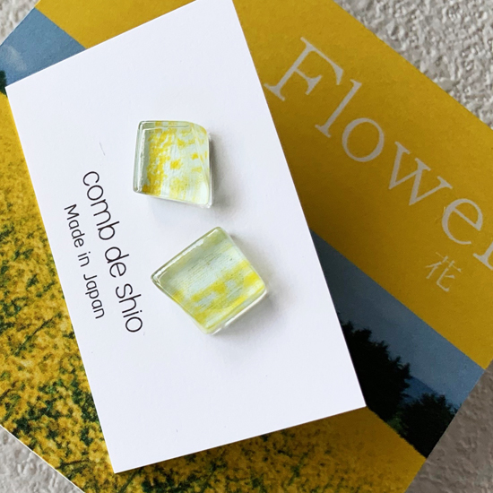 幸せを運ぶ伊勢志摩の花畑をイメージしたイエローのガラスピアス。