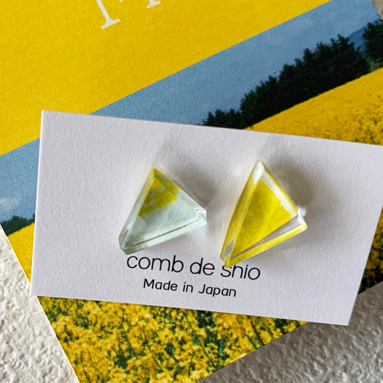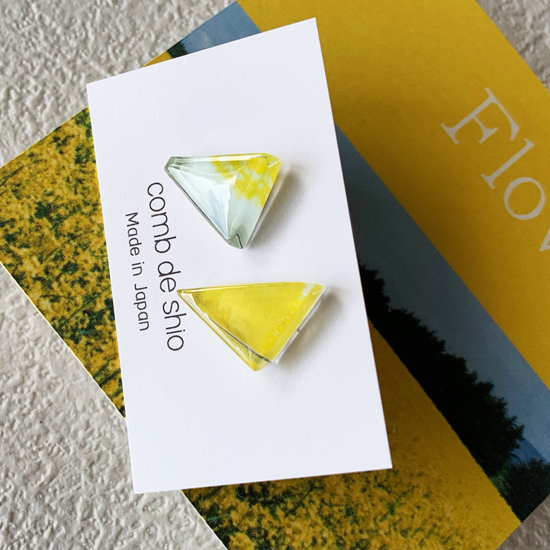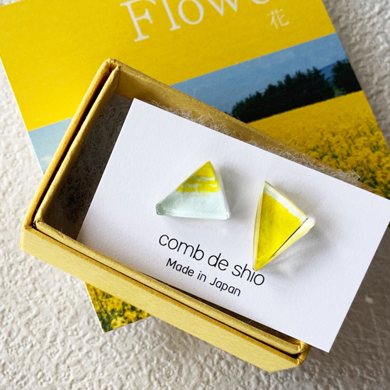 幸せを運ぶ伊勢志摩の花畑をイメージしたイエローのガラスピアス。