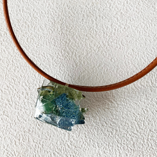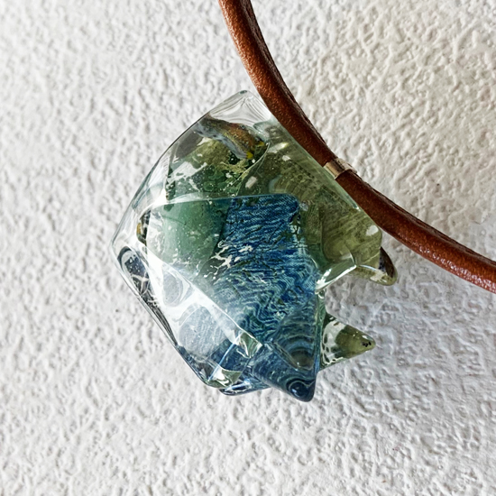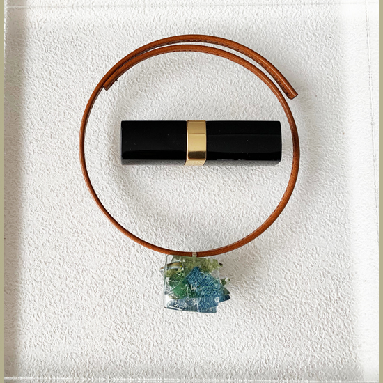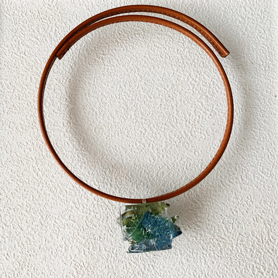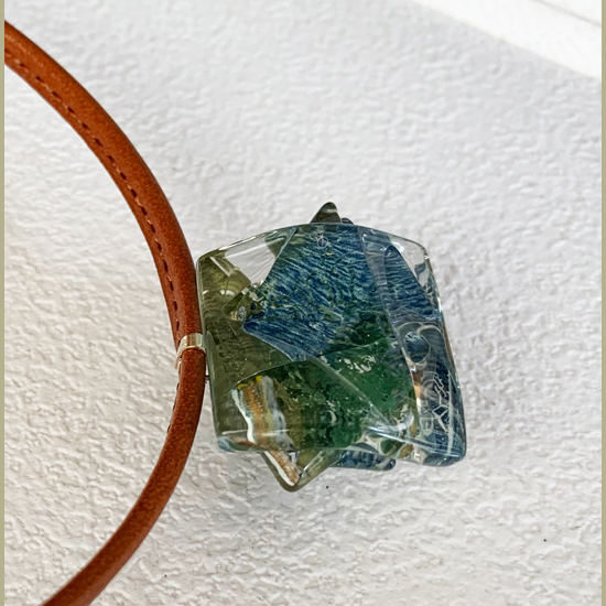 コムデシオでは、身に着けやすい様にガラス自体の重さも軽減できるように工夫しています。なかでも、この革チョーカーは、チョーカー部分がガラスの重さをさらに分散!ご愛用者の皆様「軽い!何も感じない位!着けていないみたい!」と、大好評です。気軽に、楽に、おしゃれしたい!という方は、是非、トライしてみて下さい。