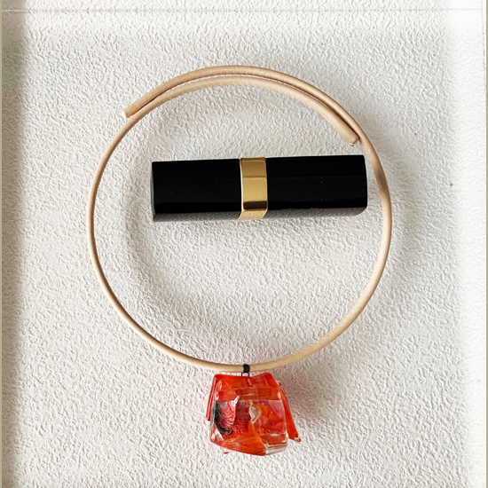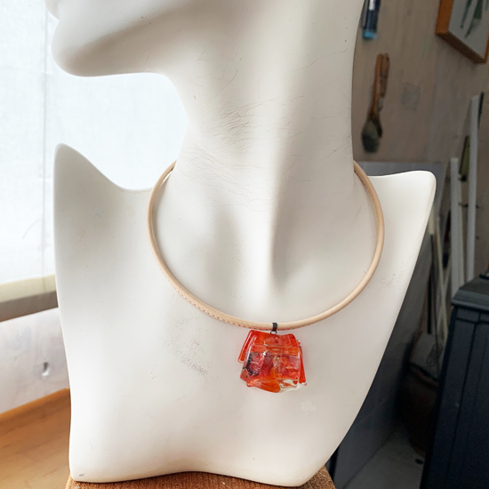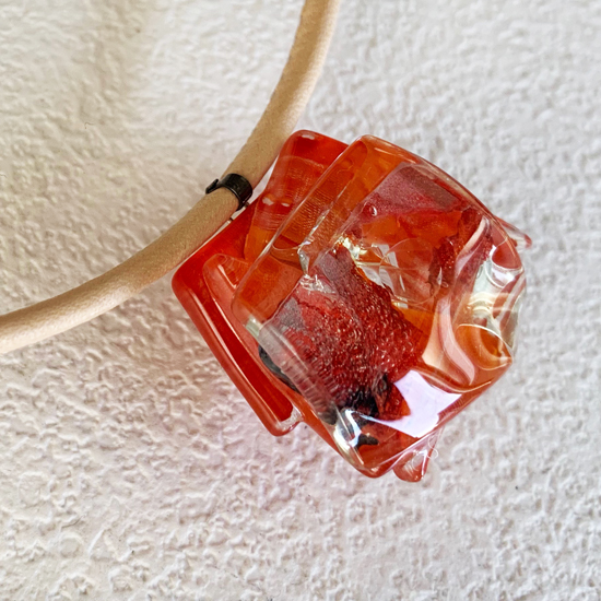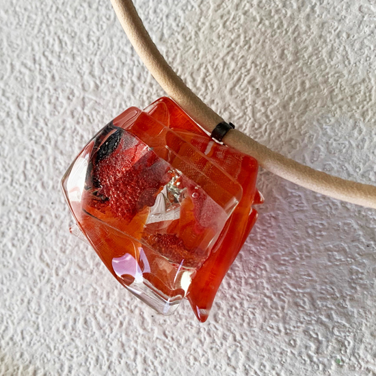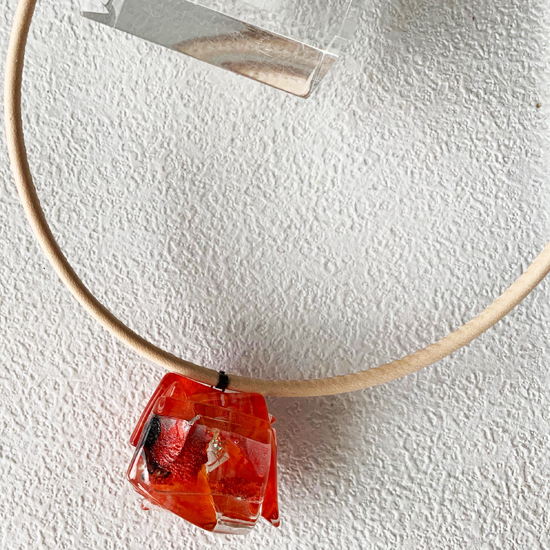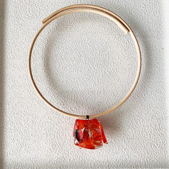コムデシオでは、身に着けやすい様にガラス自体の重さも軽減できるように工夫しています。なかでも、この革チョーカーは、チョーカー部分がガラスの重さをさらに分散!ご愛用者の皆様「軽い!何も感じない位!着けていないみたい!」と、大好評です。気軽に、楽に、おしゃれしたい!という方は、是非、トライしてみて下さい。