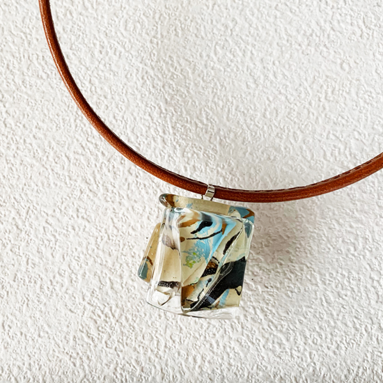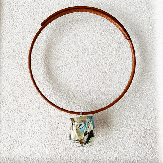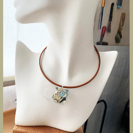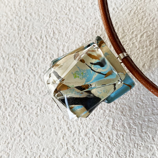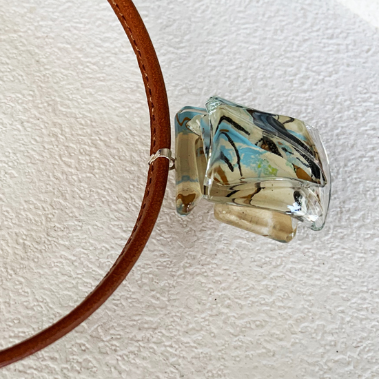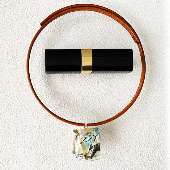 コムデシオでは、身に着けやすい様にガラス自体の重さも軽減できるように工夫しています。なかでも、この革チョーカーは、チョーカー部分がガラスの重さをさらに分散!ご愛用者の皆様「軽い!何も感じない位!着けていないみたい!」と、大好評です。気軽に、楽に、おしゃれしたい!という方は、是非、トライしてみて下さい。