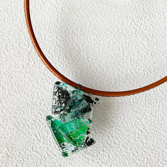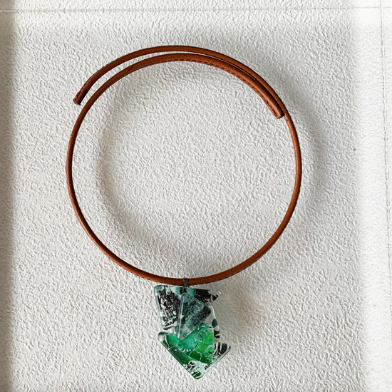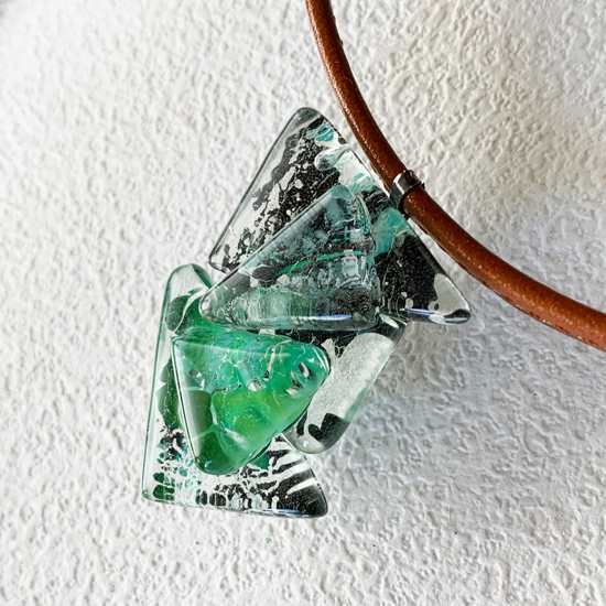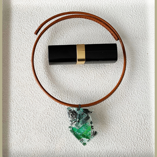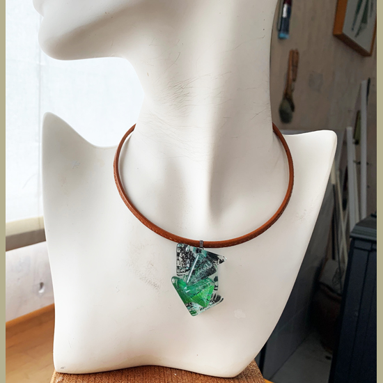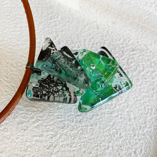 コムデシオでは、身に着けやすい様にガラス自体の重さも軽減できるように工夫しています。なかでも、この革チョーカーは、チョーカー部分がガラスの重さをさらに分散!ご愛用者の皆様「軽い!何も感じない位!着けていないみたい!」と、大好評です。気軽に、楽に、おしゃれしたい!という方は、是非、トライしてみて下さい。