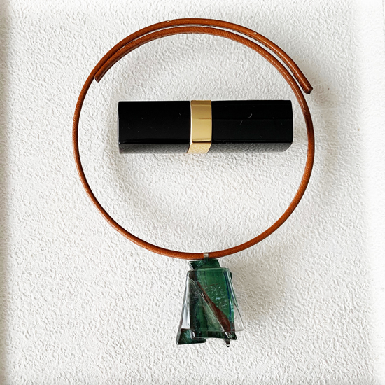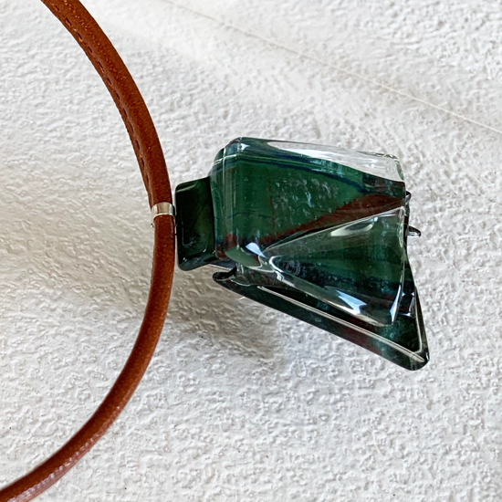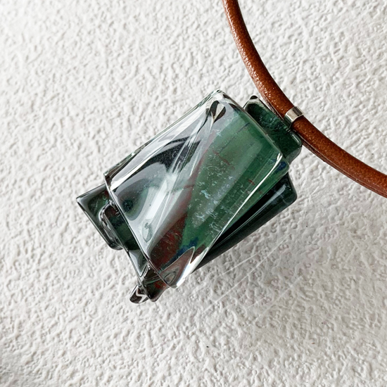 コムデシオでは、身に着けやすい様にガラス自体の重さも軽減できるように工夫しています。なかでも、この革チョーカーは、チョーカー部分がガラスの重さをさらに分散!ご愛用者の皆様「軽い!何も感じない位!着けていないみたい!」と、大好評です。気軽に、楽に、おしゃれしたい!という方は、是非、トライしてみて下さい。