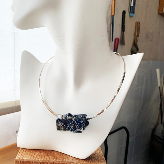 また、ペンダントのように重さが1点に集中する事無く、チョーカーがガラスの重さを分散する為、軽い着け心地。