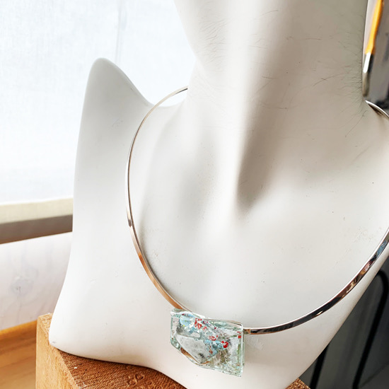 また、ペンダントのように重さが1点に集中する事無く、チョーカーがガラスの重さを分散する為、軽い着け心地。