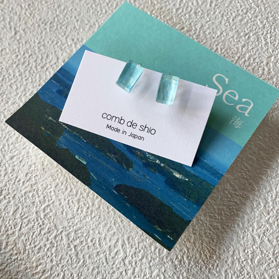 どこまでも広がる伊勢志摩の美しい海をイメージしたブルーのガラスイヤリング。
