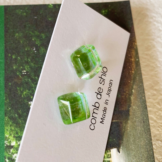 世界でひとつだけのコムデシオガラスのピアスを是非お楽しみください。