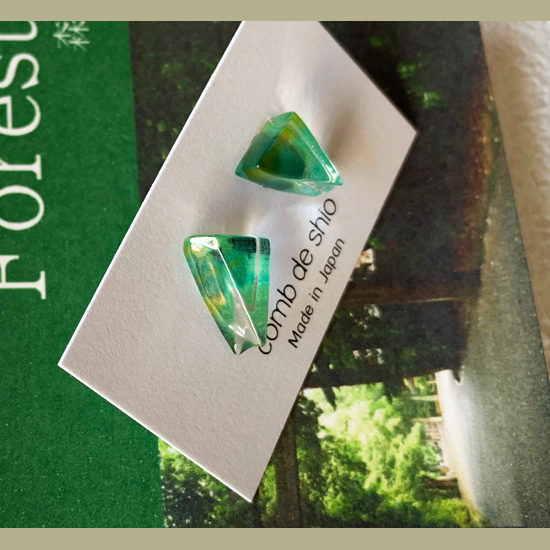 清々しい美しさを放つ伊勢志摩の森をイメージしたグリーンのピアス。