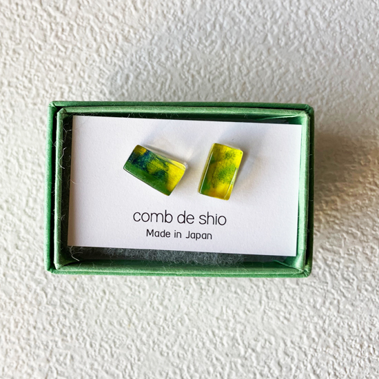 世界でひとつだけのコムデシオガラスのピアスを是非お楽しみください。