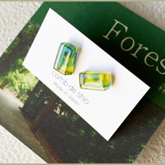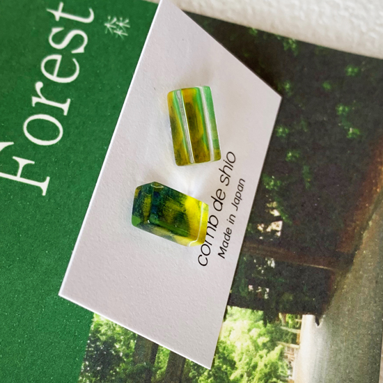 清々しい美しさを放つ伊勢志摩の森をイメージしたグリーンのピアス。