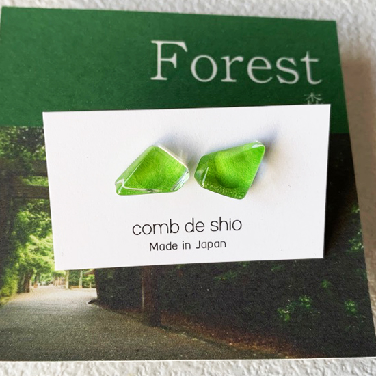 清々しい美しさを放つ伊勢志摩の森をイメージしたグリーンのピアス。