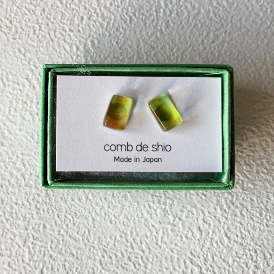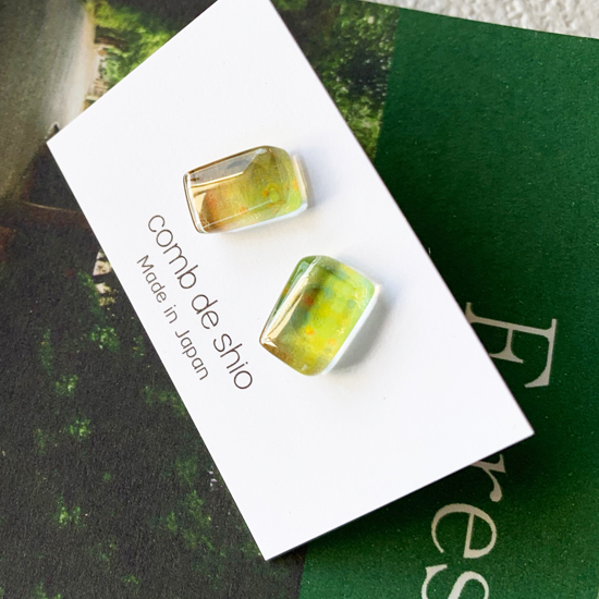 世界でひとつだけのコムデシオガラスのピアスを是非お楽しみください。