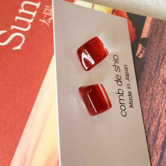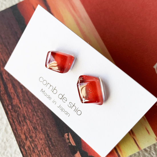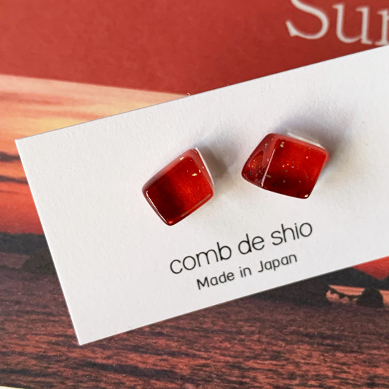 幻想的に空や海を染め上げる伊勢志摩の太陽をイメージしたレッドのガラスピアス。