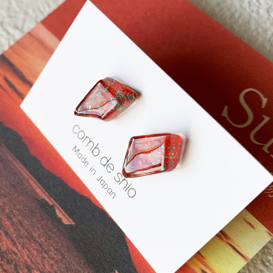 世界でひとつだけのコムデシオガラスのピアスを是非お楽しみください。