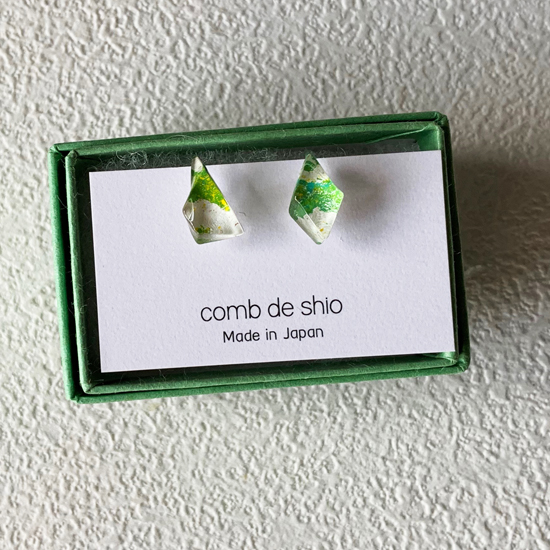 世界でひとつだけのコムデシオガラスのイヤリングを是非お楽しみください。