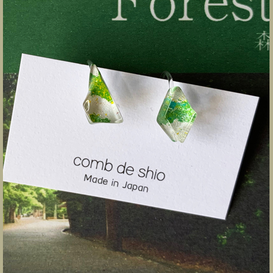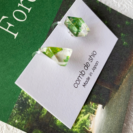 清々しい美しさを放つ伊勢志摩の森をイメージしたグリーンのガラスイヤリング。