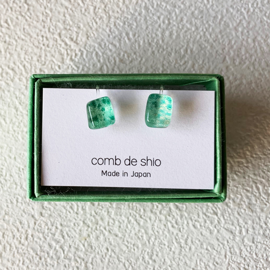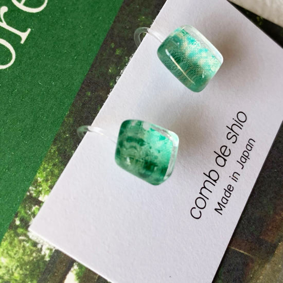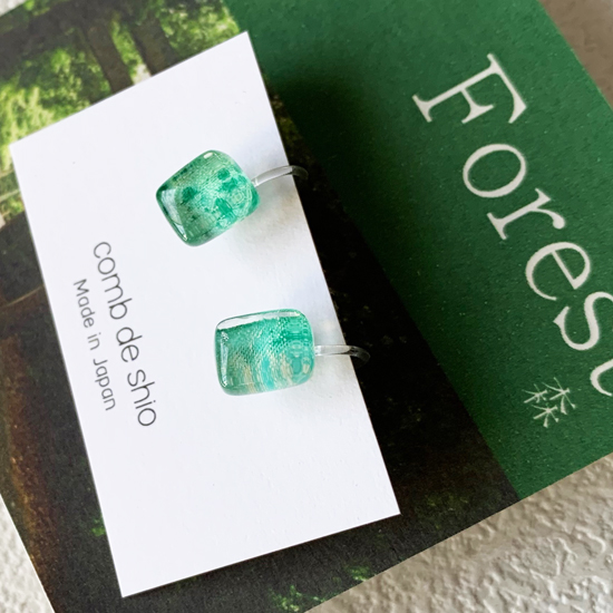清々しい美しさを放つ伊勢志摩の森をイメージしたグリーンのガラスイヤリング。
