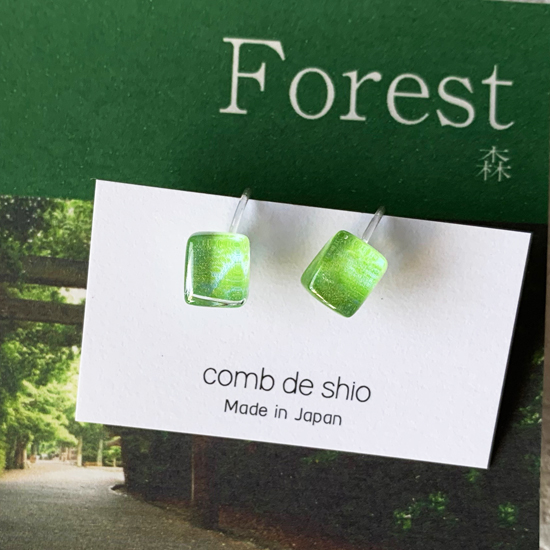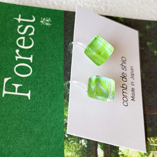 清々しい美しさを放つ伊勢志摩の森をイメージしたグリーンのガラスイヤリング。