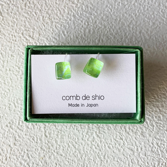 世界でひとつだけのコムデシオガラスのイヤリングを是非お楽しみください。