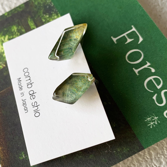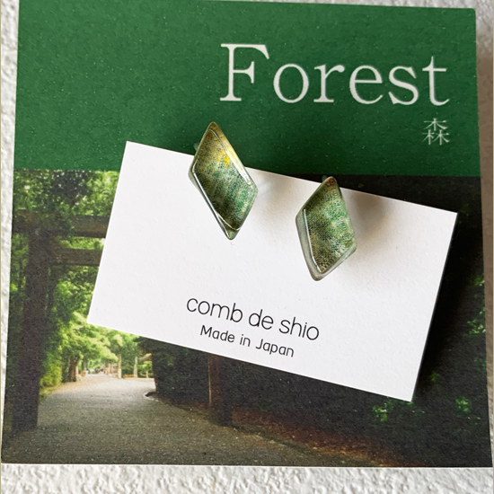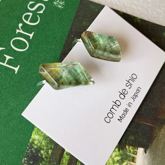清々しい美しさを放つ伊勢志摩の森をイメージしたグリーンのガラスイヤリング。