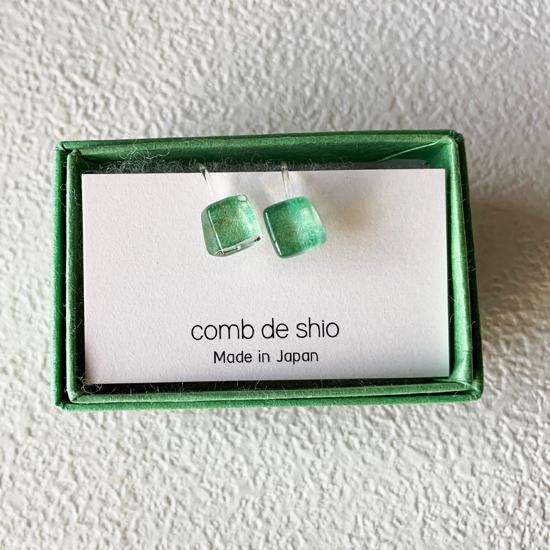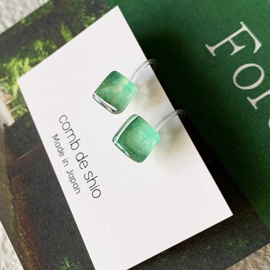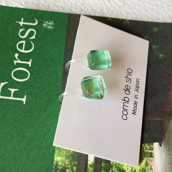清々しい美しさを放つ伊勢志摩の森をイメージしたグリーンのガラスイヤリング。