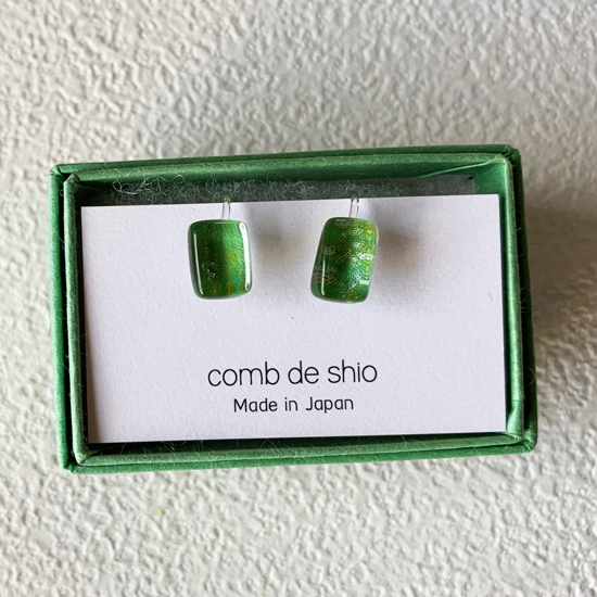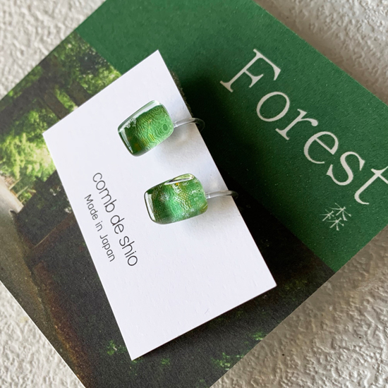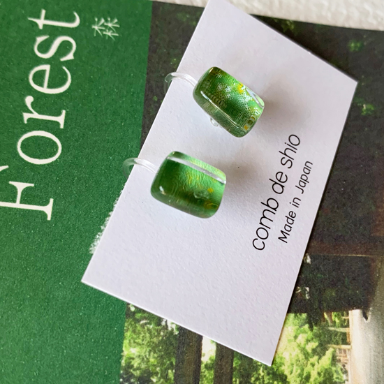 清々しい美しさを放つ伊勢志摩の森をイメージしたグリーンのガラスイヤリング。