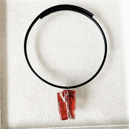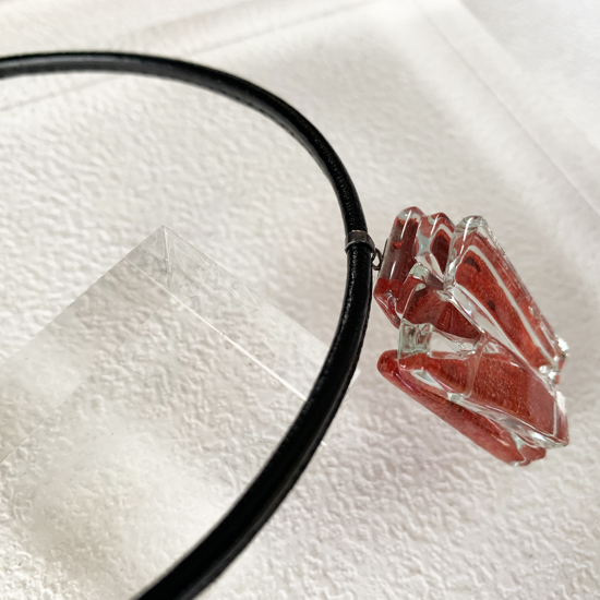 コムデシオでは、身に着けやすい様にガラス自体の重さも軽減できるように工夫しています。なかでも、この革チョーカーは、チョーカー部分がガラスの重さをさらに分散!ご愛用者の皆様「軽い!何も感じない位!着けていないみたい!」と、大好評です。気軽に、楽に、おしゃれしたい!という方は、是非、トライしてみて下さい。