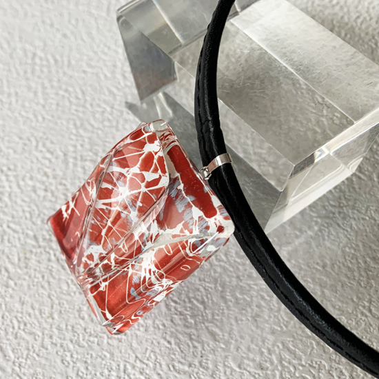 コムデシオでは、身に着けやすい様にガラス自体の重さも軽減できるように工夫しています。なかでも、この革チョーカーは、チョーカー部分がガラスの重さをさらに分散!ご愛用者の皆様「軽い!何も感じない位!着けていないみたい!」と、大好評です。気軽に、楽に、おしゃれしたい!という方は、是非、トライしてみて下さい。