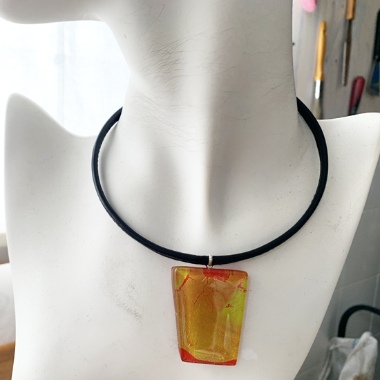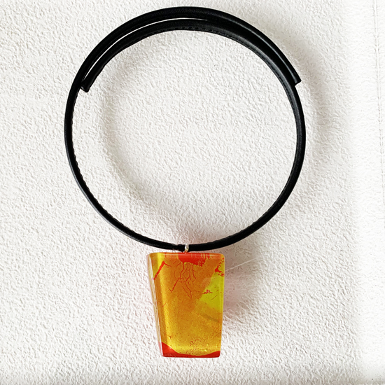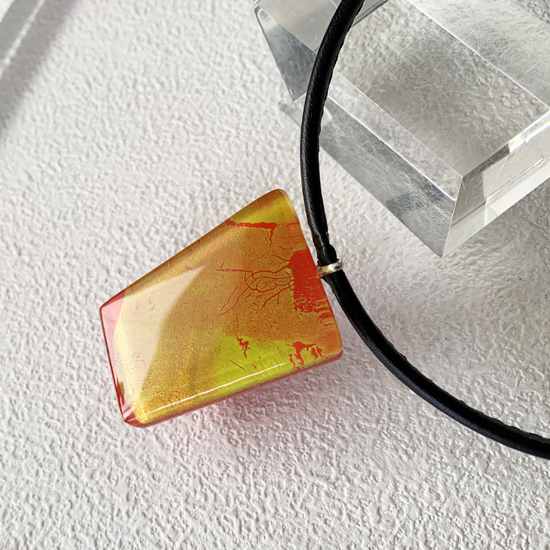 コムデシオでは、身に着けやすい様にガラス自体の重さも軽減できるように工夫しています。なかでも、この革チョーカーは、チョーカー部分がガラスの重さをさらに分散!ご愛用者の皆様「軽い!何も感じない位!着けていないみたい!」と、大好評です。気軽に、楽に、おしゃれしたい!という方は、是非、トライしてみて下さい。