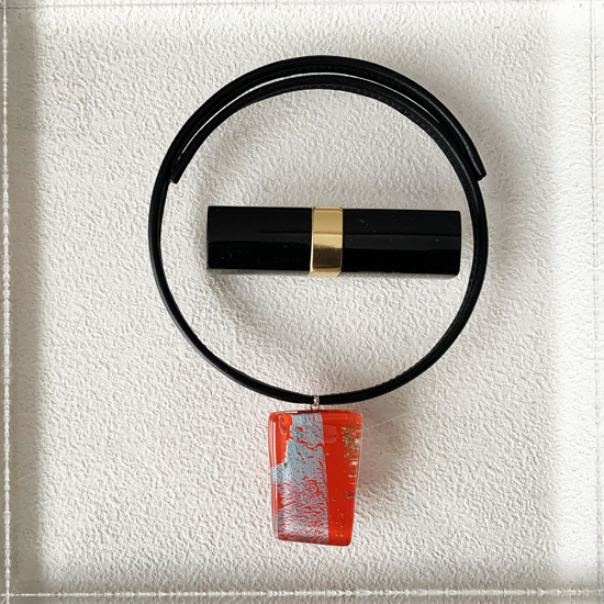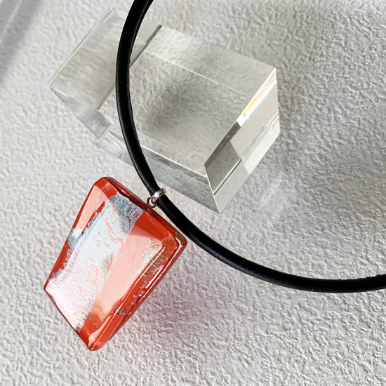 コムデシオでは、身に着けやすい様にガラス自体の重さも軽減できるように工夫しています。なかでも、この革チョーカーは、チョーカー部分がガラスの重さをさらに分散!ご愛用者の皆様「軽い!何も感じない位!着けていないみたい!」と、大好評です。気軽に、楽に、おしゃれしたい!という方は、是非、トライしてみて下さい。